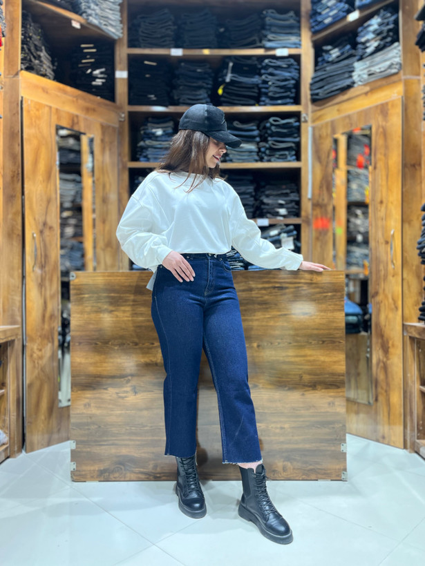 شلوار جین وایدبوت قد۹۰ زنانه پایین کات