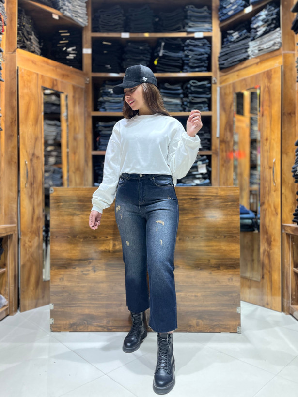 شلوار جین وایدبوت قد ۹۰ پایین کات